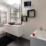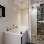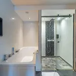 Inredningen inkluderar soffa samt flerkanals TV. I badrummet finns även en separat toalett, ett badkar och en dusch.